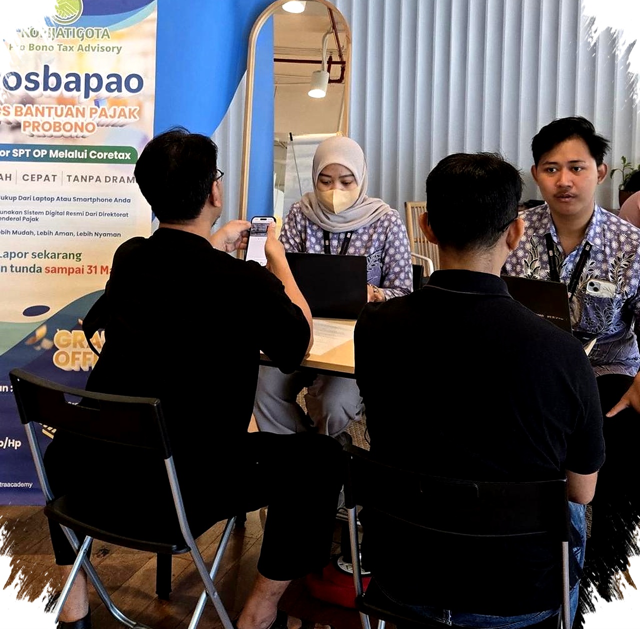 Pantauan di lapangan memperlihatkan meja layanan Posbapao penuh oleh wajib pajak yang datang untuk berkonsultasi. Suasana berlangsung tertib, meski jumlah pengunjung terus bertambah menjelang tenggat pelaporan.