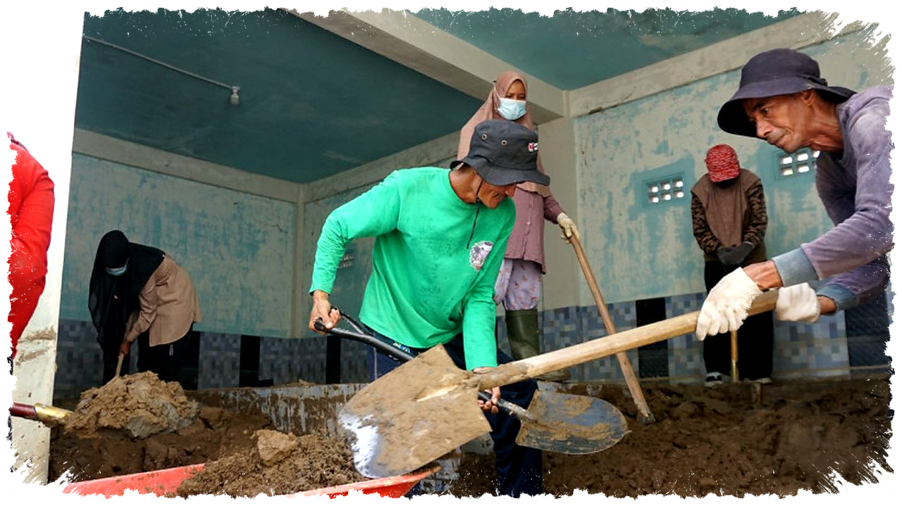 Halimah, salah seorang warga, mengatakan kegiatan itu sangat membantu keluarganya. Ia bersama warga lain membersihkan fasilitas umum seperti musala dan saluran sanitasi yang terdampak lumpur serta material sisa banjir.