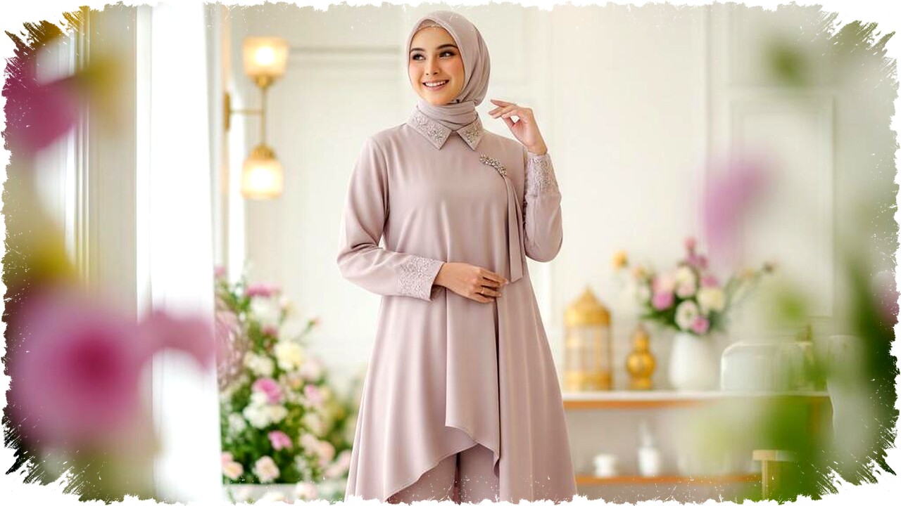 Model ini menggabungkan tunik panjang dengan celana lebar (wide leg) yang memberi kesan anggun dan sopan. Tunik yang menjuntai membuat penampilan tertutup, sedangkan celana yang lebar tidak membatasi gerak. Warna-warna lembut seperti broken white, sage green, dan dusty pink memperkuat nuansa elegan tanpa berlebihan. Kombinasi ini cocok dipakai dalam berbagai usia dan aktivitas mulai dari salat Id hingga berkumpul dengan keluarga.