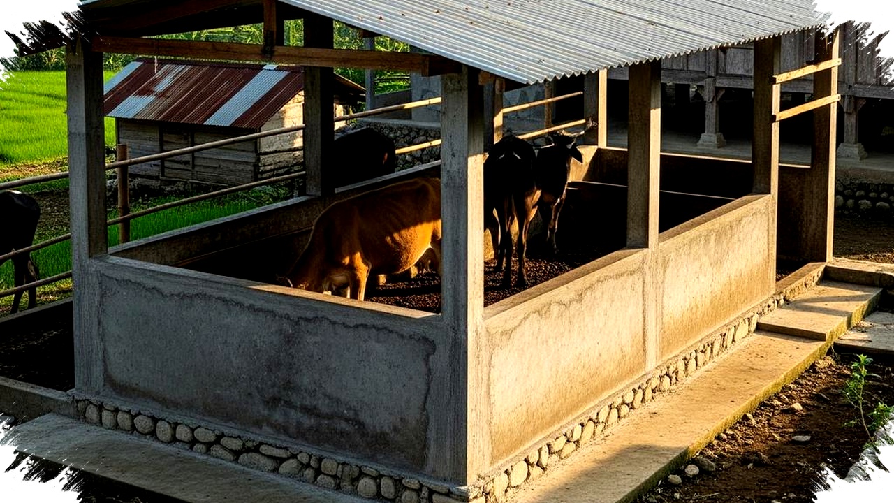 Pembangunan kandang tidak harus mewah, tapi harus memperhatikan keamanan dan kenyamanan sapi. Konstruksi yang kuat melindungi ternak dari predator dan kerusakan akibat cuaca. Desain kandang yang fungsional juga memudahkan peternak melakukan aktivitas perawatan.