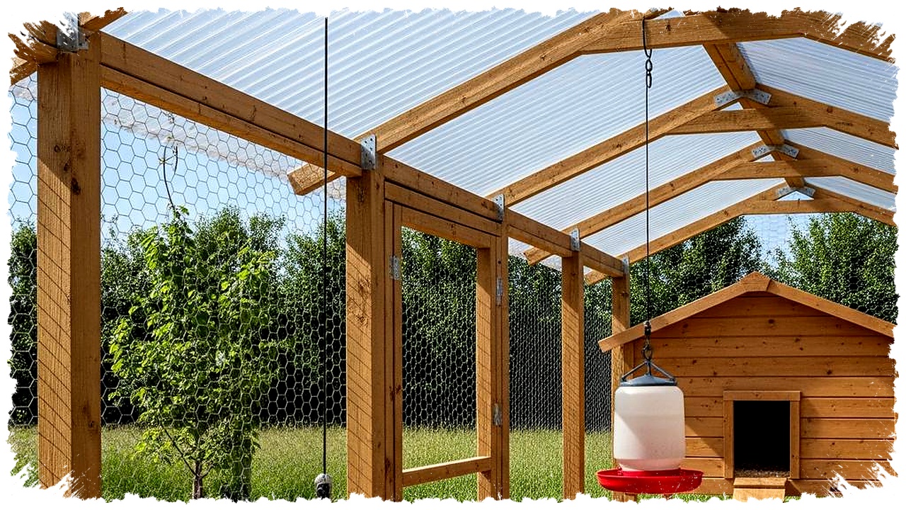 Pilihan lain adalah model lorong kawat atau chicken run tunnel. Desain ini membantu ayam bergerak dari kandang utama ke area rumput tanpa merusak kebun sayur atau tanaman hias.