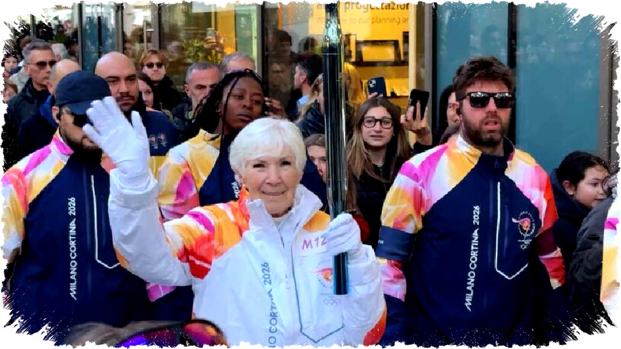 Gail Miller Carries Olympic Torch Through Milan Ahead of 2026 Games