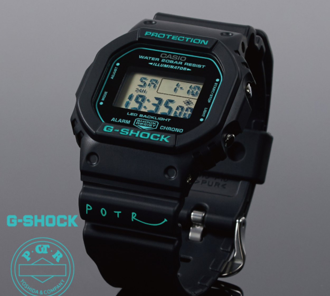Model spesial ini menonjolkan aksen biru turquoise pada bagian case dan strap, sehingga memberikan tampilan segar yang menarik perhatian, namun tetap mempertahankan karakter tangguh yang menjadi ciri khas G-Shock. Pilihan warna tersebut merupakan ciri khas gaya Porter, menghadirkan nuansa elegan dan modern pada jam tangan ikonik ini.