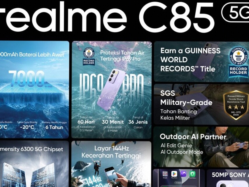 Dengan mengusung berbagai teknologi pendukung produktivitas, realme C85 5G layak dipertimbangkan sebagai pilihan utama di pasar smartphone Indonesia tahun ini. Bagi Anda yang aktif, membutuhkan perangkat tahan banting sekaligus performa kencang, realme C85 5G siap memenuhi ekspektasi tersebut.