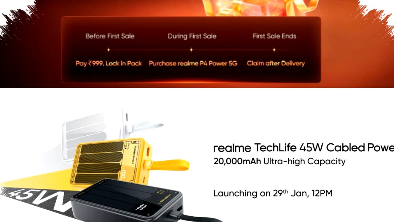 Selain itu, Realme juga mempersiapkan peluncuran produk baru, yaitu TechLife 45W Cabled Power Bank, yang dijadwalkan rilis bersamaan dengan penjualan perdana Realme P4 Power 5G. Power bank ini hadir dengan kapasitas besar 20.000 mAh, yang dibentuk dari dua sel berkapasitas 10.000 mAh masing-masing. Fitur unggulan lainnya termasuk kemampuan pengisian cepat dengan daya 45W dan kabel USB-C bawaan yang terjalin kuat untuk ketahanan lebih baik.