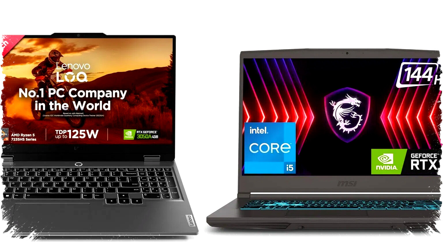 Lenovo LOQ 15 hadir dengan layar IPS 15,6 inci beresolusi Full HD, refresh rate 144Hz, dan tingkat kecerahan hingga 300 nits. MSI Thin 15 juga mengusung panel serupa dengan spesifikasi tampilan yang nyaris identik. Dari sisi prosesor, Lenovo memakai AMD Ryzen 5 7235HS, sedangkan MSI mengandalkan Intel Core i5-13420H. Keduanya menggunakan RAM DDR5 16GB yang dapat diupgrade dan penyimpanan SSD PCIe Gen4 512GB yang juga dapat diganti. GPU pada Lenovo adalah NVIDIA RTX 3050A dengan TGP 65W, sedangkan MSI mengusung NVIDIA RTX 3050 dengan TGP 45W saja. Kapasitas baterai Lenovo lebih besar yaitu 60Wh dibandingkan MSI yang 52,4Wh.