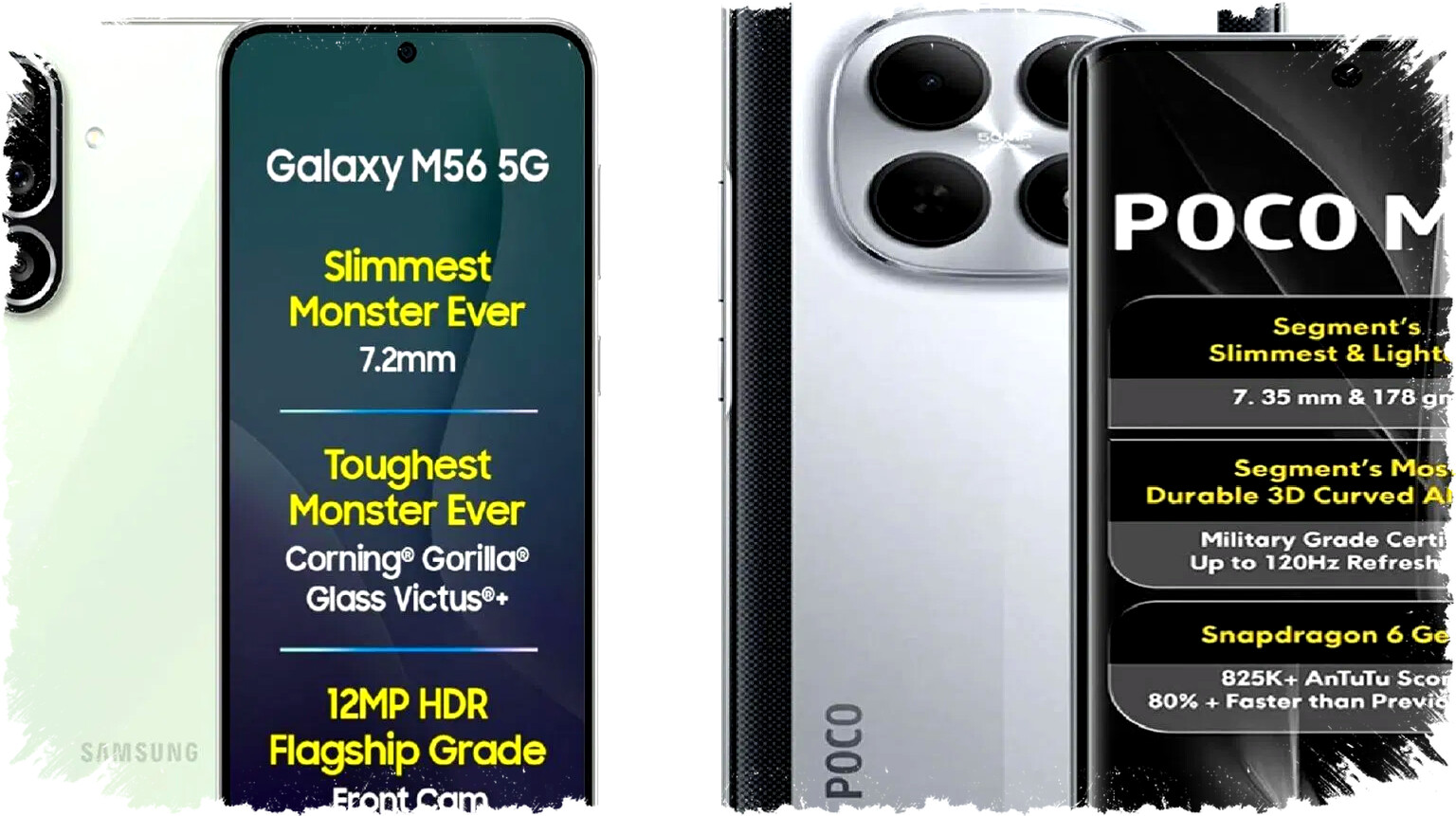 - Layar: Galaxy M56 6,55 inci Super AMOLED; Poco M8 6,77 inci Flow AMOLED
