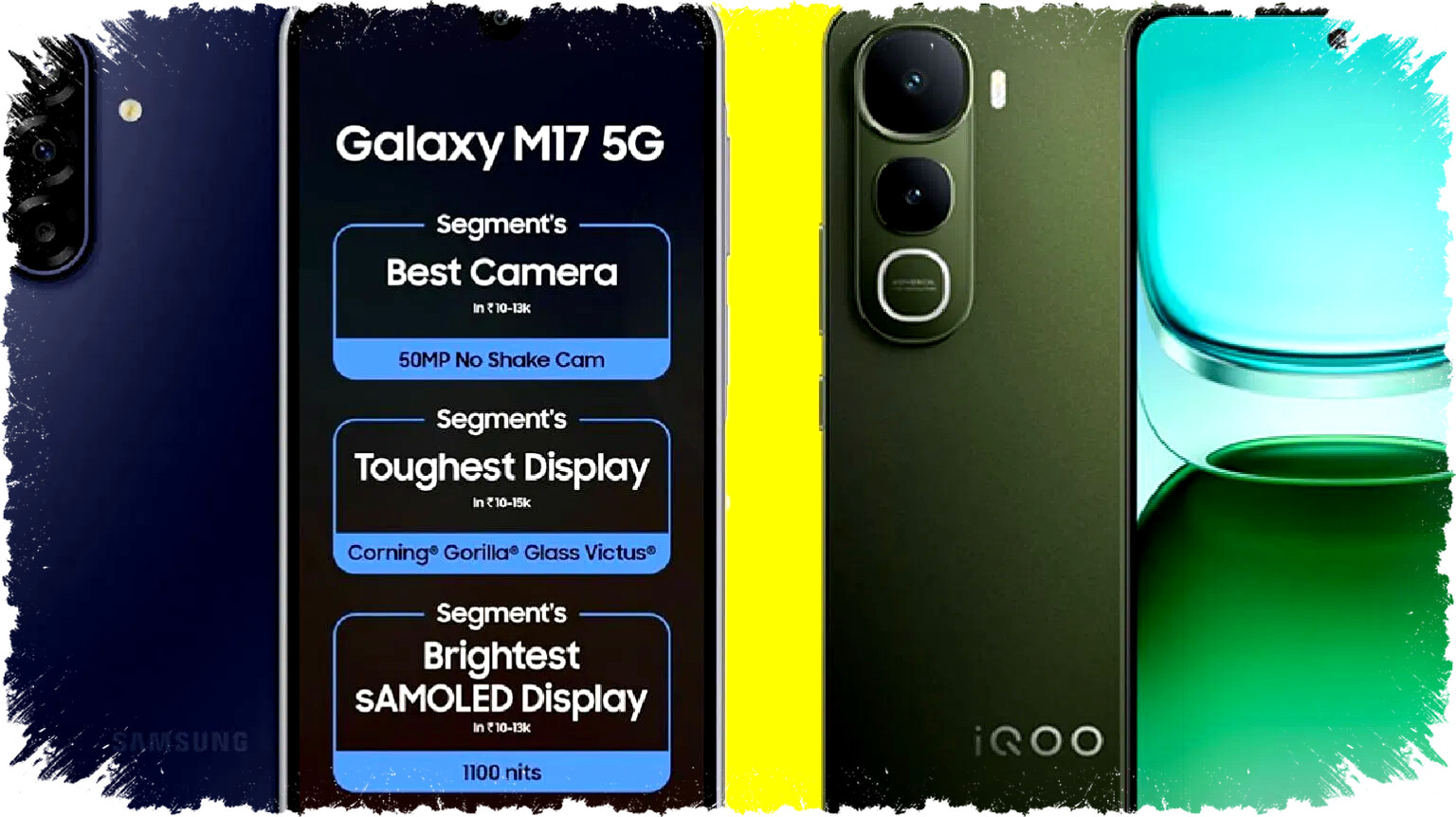 Samsung Galaxy M17 menggunakan konfigurasi tiga kamera belakang: 50 MP dengan OIS, 5 MP, dan 2 MP, serta kamera depan 16 MP. Sementara iQOO Z10 Lite punya dua kamera belakang 50 MP dan 2 MP, dengan kamera depan 5 MP. Kapasitas baterai menjadi keunggulan iQOO dengan 6000 mAh, unggul dari Galaxy M17 yang hanya membawa baterai 5000 mAh. Ini membuat iQOO lebih unggul dalam hal daya tahan penggunaan.