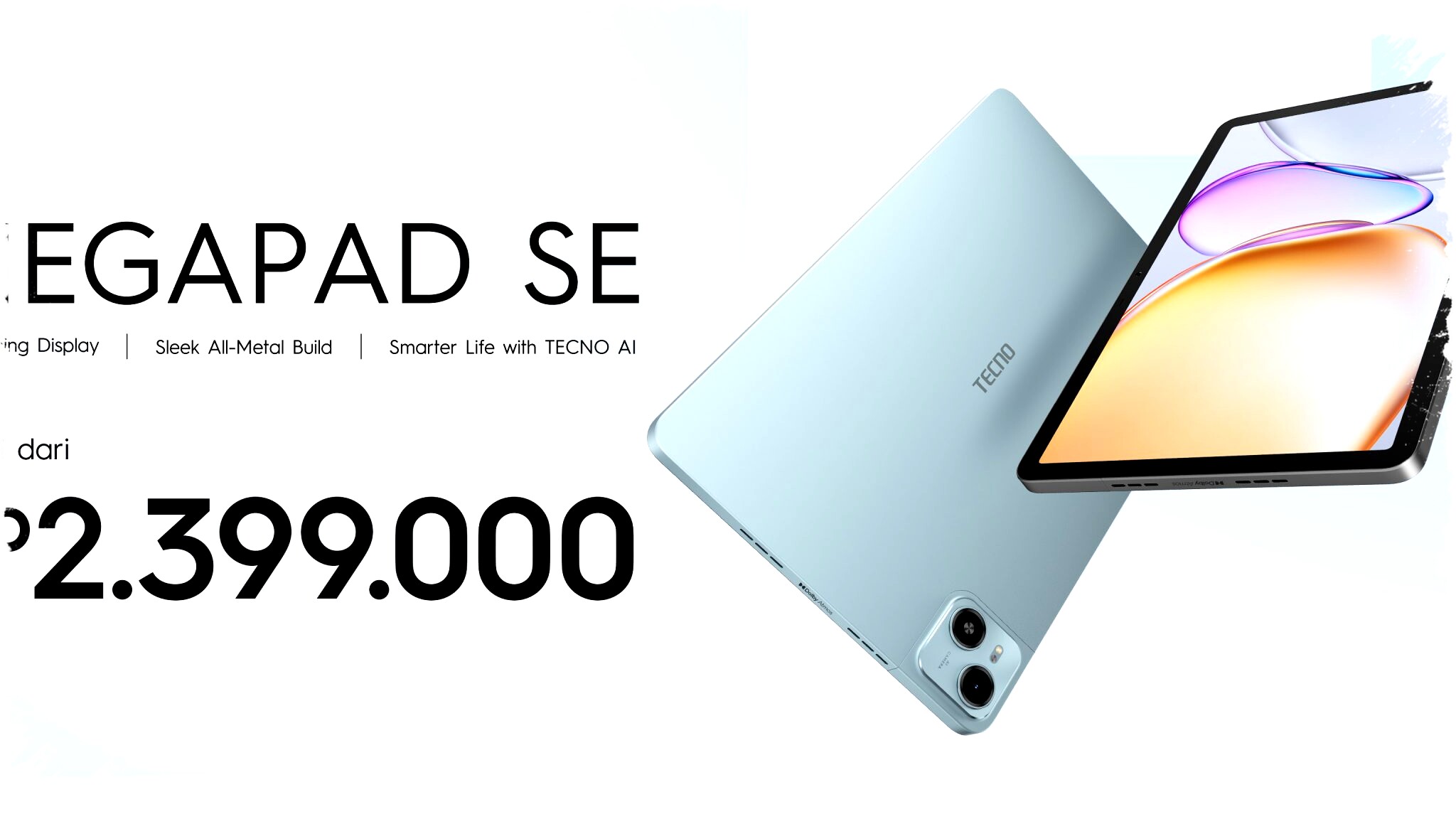 Tablet ini tersedia dalam dua pilihan warna menarik, yaitu Ice Blue dan Moonstone Gray, yang sesuai untuk berbagai gaya dan preferensi pengguna. TECNO MEGAPAD SE dijual dengan harga mulai dari Rp2.399.000 untuk varian dengan penyimpanan 128GB. Dalam paket pembelian, konsumen mendapatkan free standing case sebagai pelengkap kenyamanan penggunaan sehari-hari.