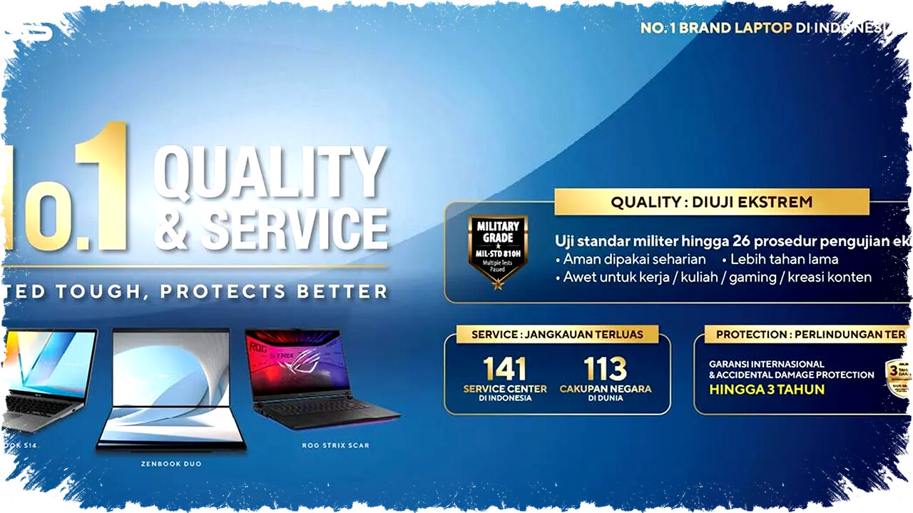 ASUS Indonesia menegaskan posisinya sebagai pemimpin pasar laptop dengan meluncurkan kampanye “No.1 Quality & Service”. Kampanye ini menyoroti standar baru pada kualitas perangkat tahan banting dan perlindungan layanan purna jual yang komprehensif. ASUS mengajak media dan KOL untuk membuktikan ketangguhan laptopnya melalui demo langsung yang menunjukkan daya tahan fisik unit, mulai dari uji tumpahan air sampai tekanan beban berat pada sasis laptop.