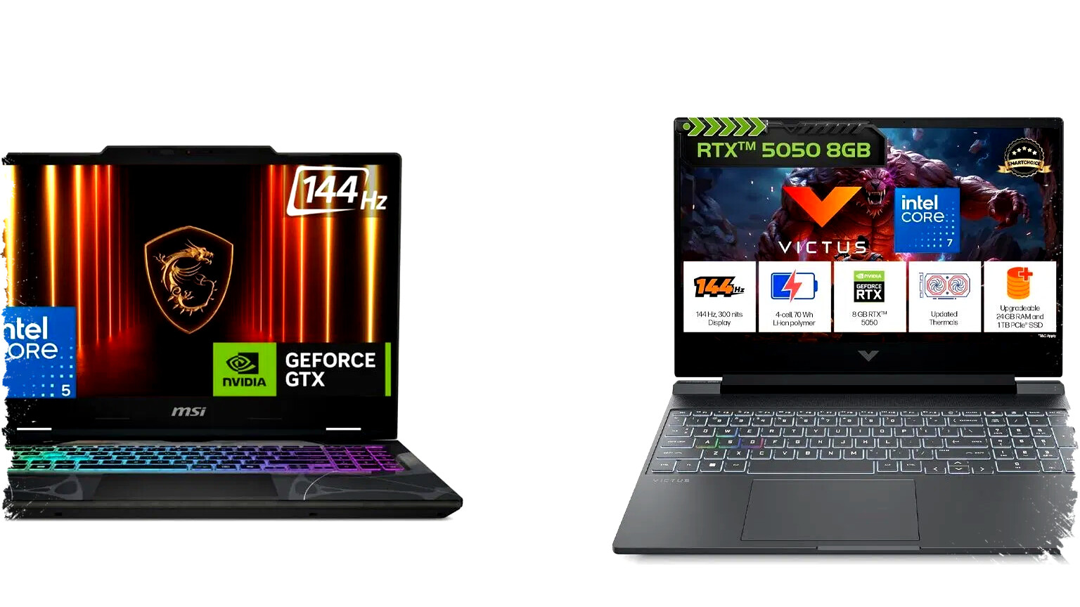 HP Victus hadir dengan prosesor Intel Core i7 240H yang lebih kuat dibanding MSI Cyborg 15. Laptop ini juga mendapatkan peningkatan RAM hingga 24GB dan kapasitas SSD menjadi 1TB, cukup lega untuk berbagai aplikasi dan penyimpanan data. Layarnya masih menggunakan panel IPS standar tapi upgrade RAM dan penyimpanan membuat harga ekstra ₹8K terasa sepadan.