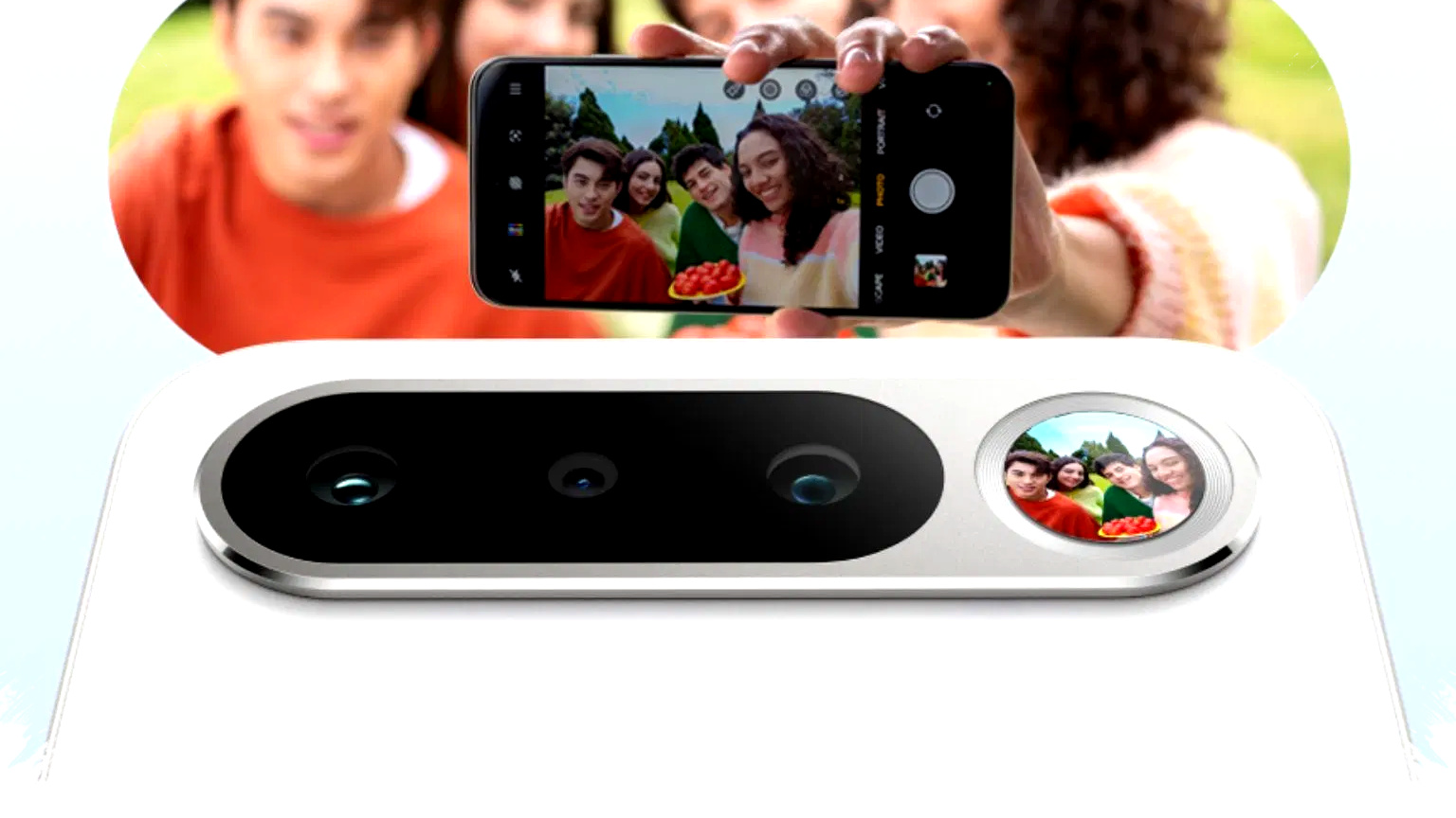 Teaser resmi memperlihatkan adanya elemen cermin kecil di sisi modul kamera belakang. Fitur ini dirancang agar pengguna bisa membingkai wajah saat memakai kamera utama, yang secara teori memberi hasil lebih baik dibanding kamera depan biasa.