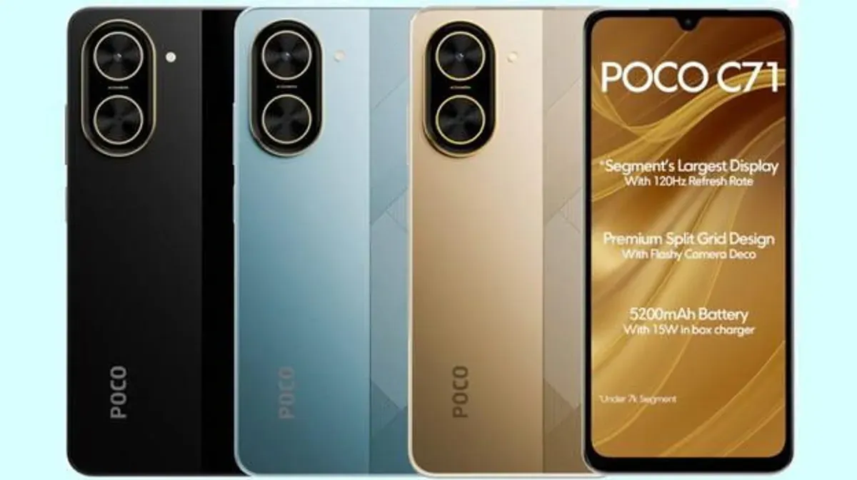 - POCO C71: Layar 6,88 inci, 120Hz, RAM 4GB, Storage 128GB, baterai 5.200mAh, chipset UniSOC T7250.