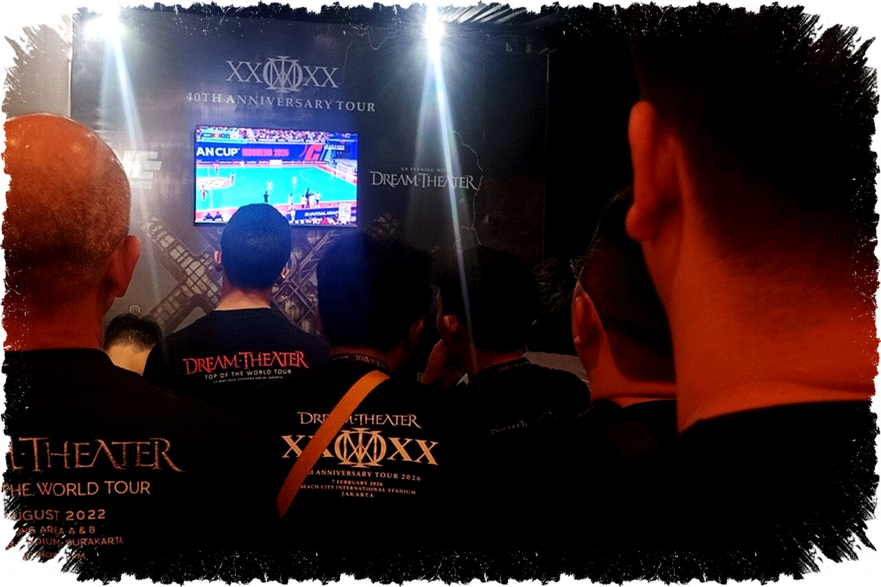 Ketika konser Dream Theater berlangsung di Beach City International Stadium Jakarta pada Sabtu, 7 Februari 2026, suasana semakin unik dengan hadirnya nobar (nonton bareng) dadakan laga final Piala Asia Futsal AFC 2026 antara Timnas Futsal Indonesia melawan Iran. Momen ini terjadi di sela-sela jeda waktu antara Act 1 dan Act 2 konser, tepatnya saat penonton membubarkan diri untuk istirahat.