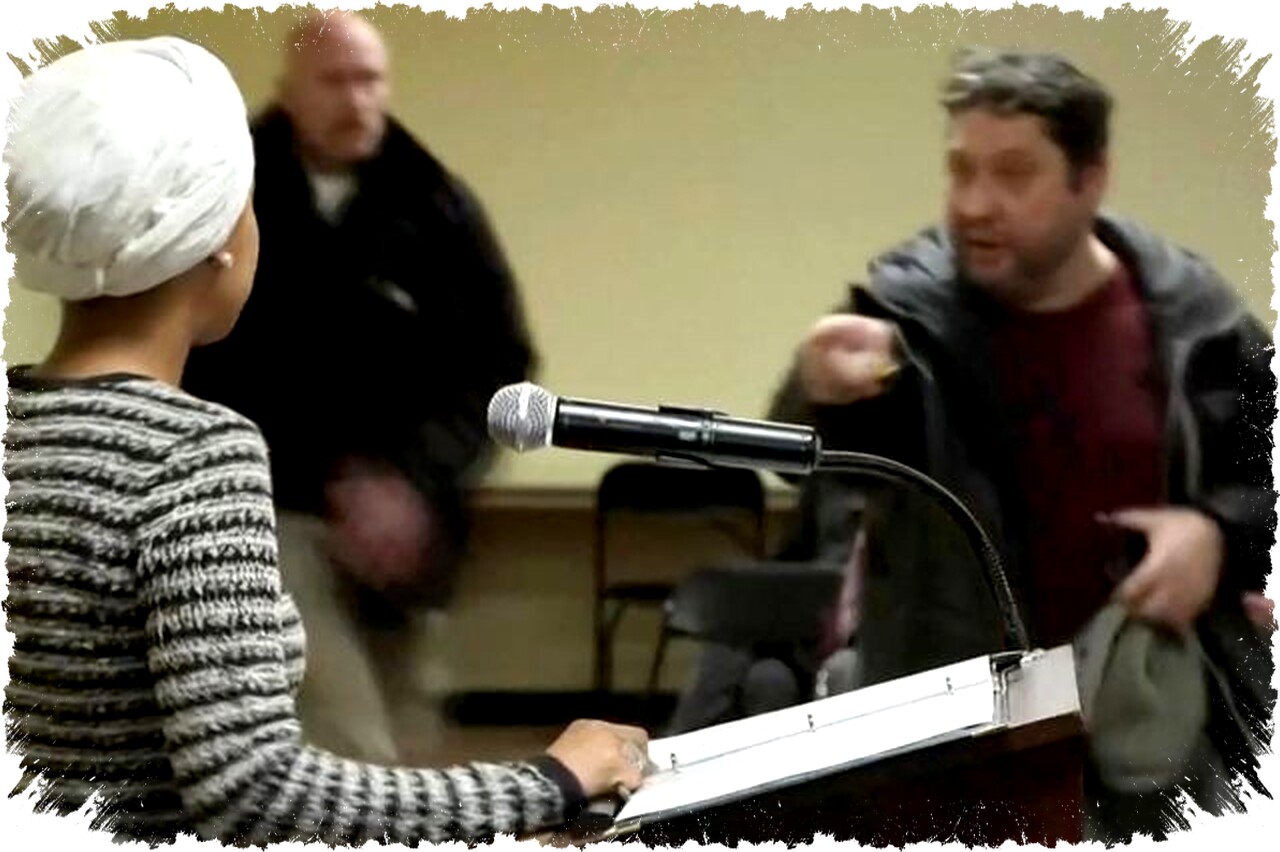 Omar tengah berpidato tentang reformasi penegakan imigrasi ketika seorang pria dari barisan depan mendekatinya dan menyemprotkan cairan yang menurut saksi berbau ammonia. Pria itu juga mengucapkan kata-kata “Anda harus mengundurkan diri” kepada Omar. Setelah insiden, Omar menunjukkan sikap tegas dan melanjutkan pidatonya.