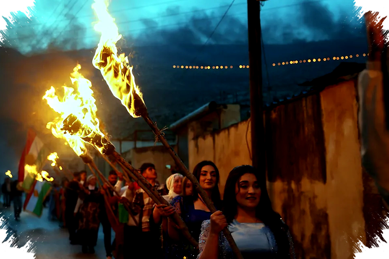 Nowruz adalah tradisi kuno berusia 3.000 tahun yang dirayakan oleh berbagai kelompok etnis dan agama, termasuk Kurdi di Suriah, Turki, Irak, dan Iran. Festival ini melibatkan pesta jalanan penuh warna dan prosesi obor di pegunungan, yang berakar pada agama Zoroastrianisme.