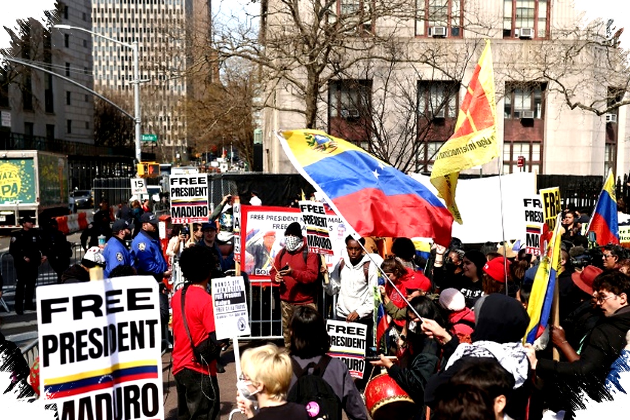 Sebelum sidang, sejumlah pendukung dan penentang Maduro berkumpul di depan pengadilan Manhattan. Salah satu yang mencolok adalah boneka raksasa yang menggambarkan Maduro dengan busana tahanan oranye lengkap dengan borgol. Kericuhan sempat terjadi antar demonstran sebelum polisi turun tangan.