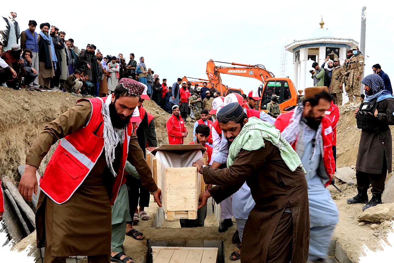 Penguburan berlangsung ketika sekop berat membuka lubang besar untuk menampung 60 peti jenazah. Pejabat Afghanistan mengatakan serangan udara Pakistan pada fasilitas berkapasitas 2.000 tempat tidur itu terjadi pada pertengahan bulan lalu dan menewaskan ratusan orang, meski Islamabad membantah menargetkan warga sipil dan menyatakan serangan diarahkan ke depot amunisi.