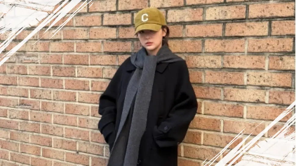 Untuk tampilan lebih elegan, Seulgi memilih oversized long coat hitam yang dipadukan dengan celana jeans dan sepatu loafers. Outfit ini sederhana namun rapi, cocok untuk kamu yang mengedepankan kesan minimalis dan tetap hangat dengan tambahan aksesori seperti topi baseball yang memberikan sentuhan effortlessly cool.