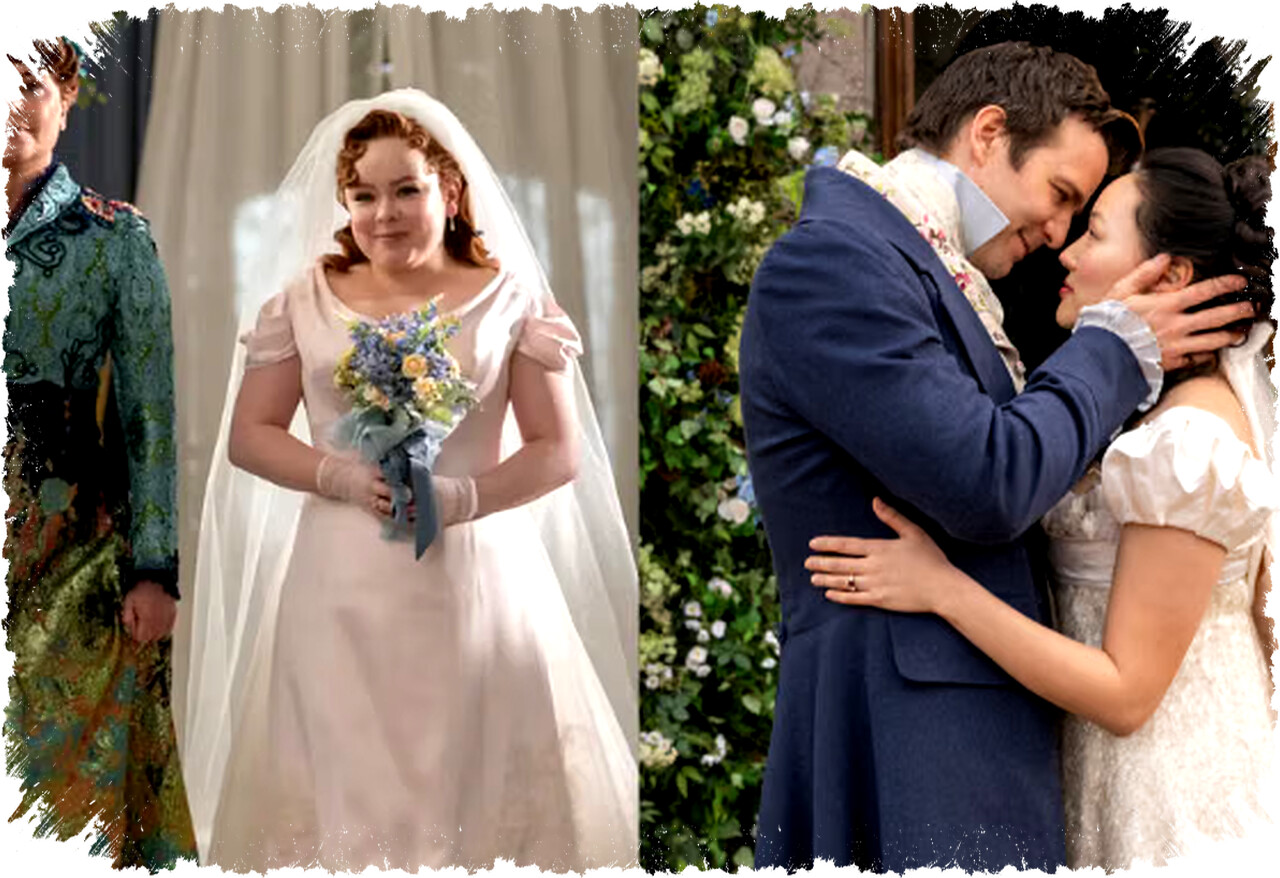 Bridgerton adalah serial drama yang terkenal dengan latar era Regency yang memukau. Penonton sering dibuat terpesona oleh momen pernikahan yang sarat dengan emosi dan keindahan. Gaun pengantin dalam Bridgerton selalu menampilkan potongan klasik dengan gaya empire waist yang menjadi ciri khas.