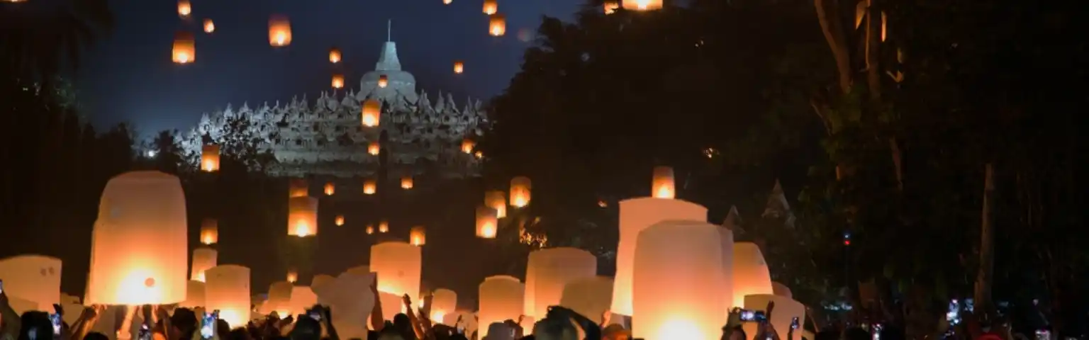 Puncak acara adalah pelepasan lampion yang spektakuler. Ribuan lampion diterbangkan ke langit malam Borobudur sebagai simbol dari doa dan usaha menyebarkan semangat damai. Momen ini sangat magis dan menjadi pengalaman tak terlupakan bagi siapa pun yang hadir.