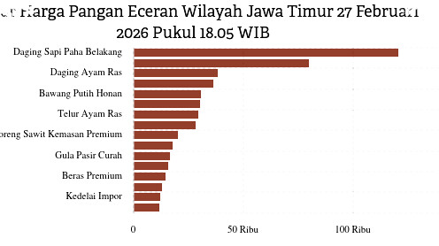Berikut daftar harga komoditas pokok di Jawa Timur per Jumat pukul 18.05 WIB: