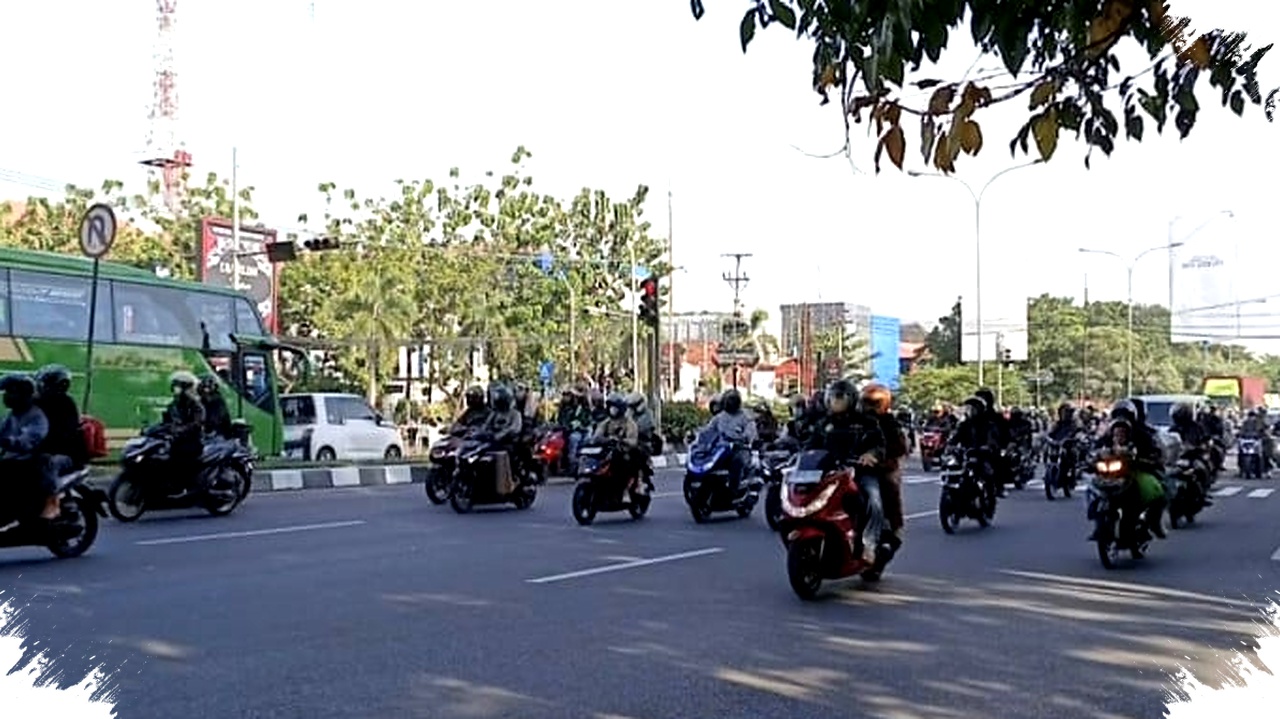 Memasuki H-2 Lebaran, arus lalu lintas di Jalur Pantura Cirebon dari arah Jakarta menuju Jawa Tengah didominasi oleh kendaraan roda dua. Ribuan pemudik motor melintasi jalan arteri ini mulai pukul 08.00 WIB dengan membawa berbagai perlengkapan seperti kardus dan tas besar di motornya.