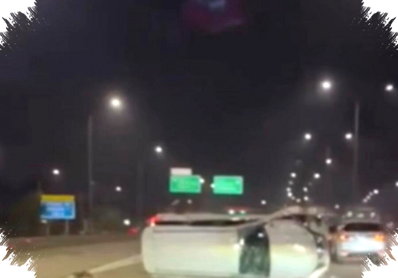 Situasi itu memicu tabrakan yang membuat Fortuner menghantam Agya dari sisi yang berdekatan. Benturan tersebut kemudian menyebabkan Fortuner terguling ke lajur dua dan berhenti dalam posisi melintang.