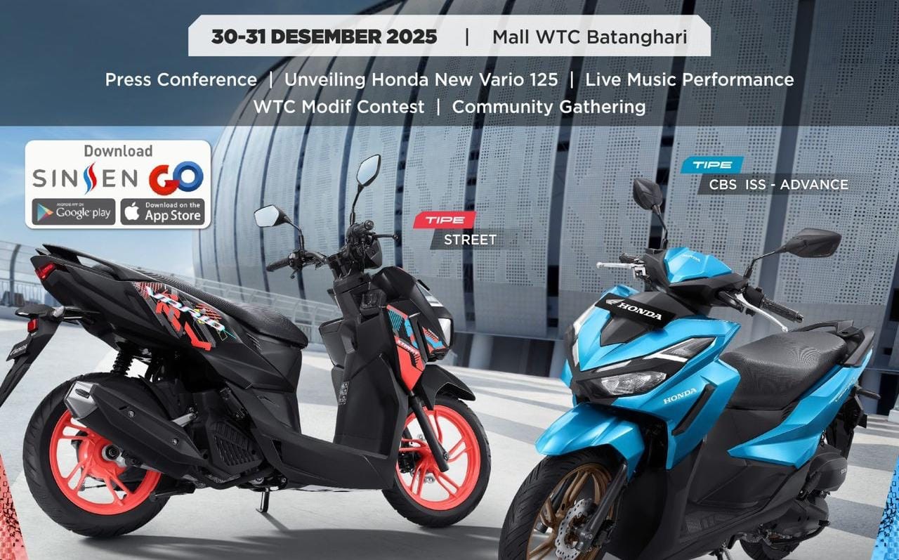 Grand launching All New Honda Vario 125 digelar di Mall WTC Batanghari, Jambi, tepat pada penghujung bulan Desember. PT Sinar Sentosa Primatama (Sinsen), sebagai Main Dealer Honda di Jambi, mengundang seluruh masyarakat untuk ikut serta dalam momen peluncuran skutik terbaru ini. Acara tersebut terbuka untuk umum dan dirancang sebagai ruang berkumpul sekaligus hiburan akhir tahun bersama keluarga dan komunitas.