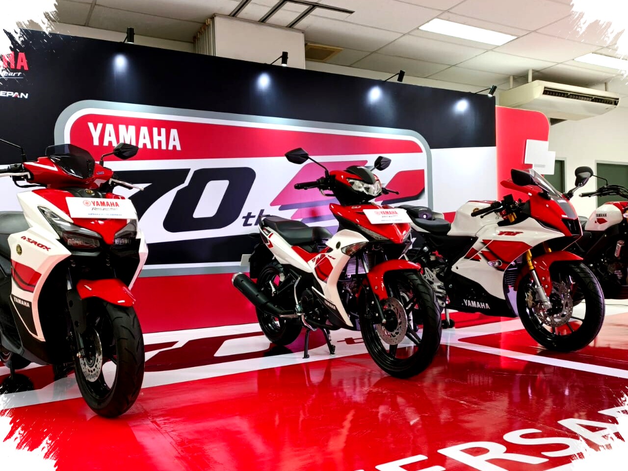 PT Yamaha Indonesia Motor Manufacturing (YIMM) kembali menghadirkan produk spesial untuk merayakan anniversary ke-70 Yamaha Motor Company. Kali ini, Yamaha merilis empat model motor dengan livery 70th Anniversary yang kental dengan nuansa sejarah dan racing heritage. Keempat motor tersebut adalah Yamaha MX King 150, Aerox Alpha Turbo, R15M Connected/ABS, dan XSR 155.