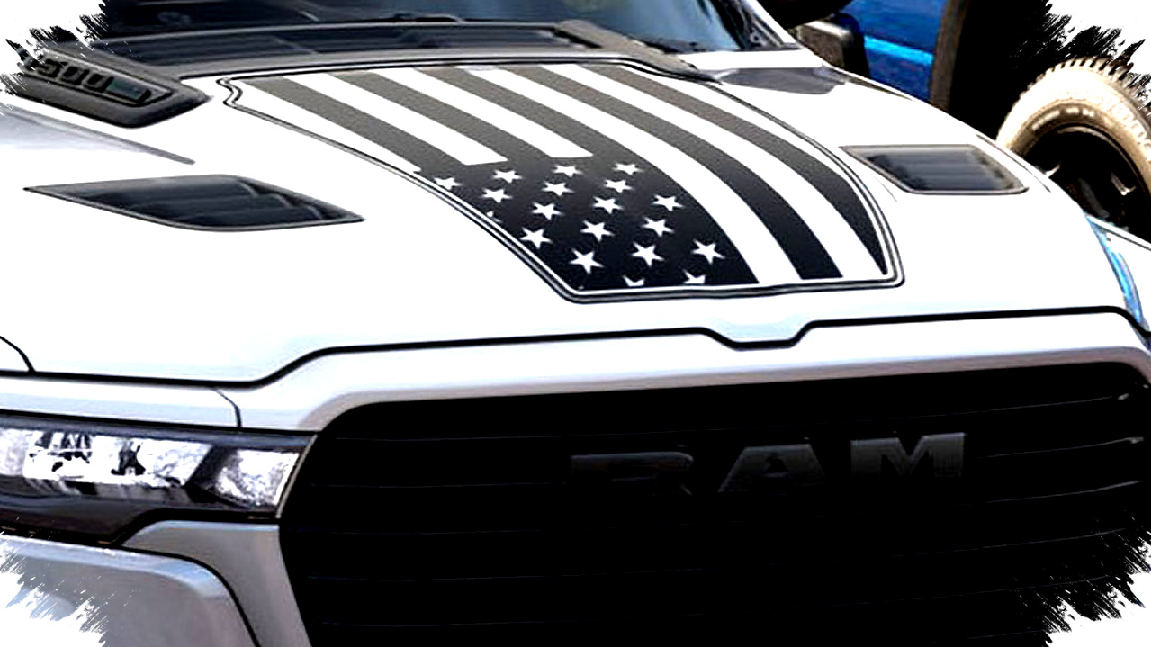 - Grafis bendera Amerika pada kap mesin dan sisi bak.