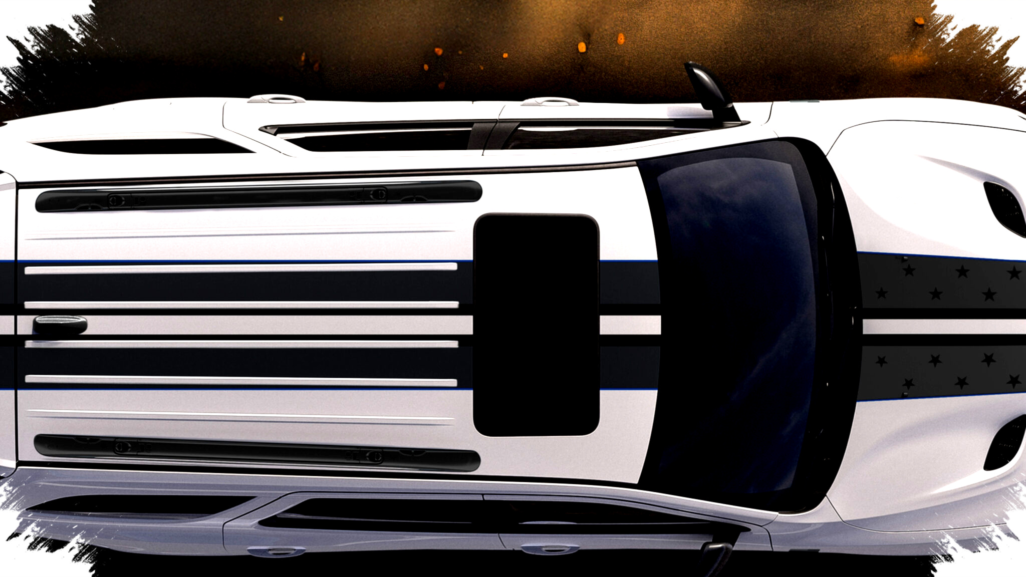 Perubahan paling terlihat ada pada tampilan eksterior dan interior. Dodge memberi Durango GT America250 garis ganda bermotif bintang, aksen tracer biru, decal fender America250, dan pelek 20 inci Black Noise.