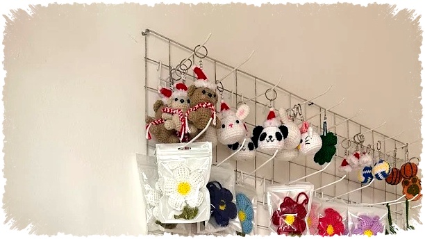 - Produk utama: bunga rajut dan boneka rajut.