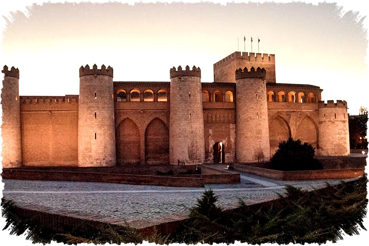 La Aljaferia dibangun pada masa kekuasaan dinasti Bani Hudid sebagai istana keluarga kerajaan. Setiap ruangnya dihiasi dengan ukiran dan lengkungan bertingkat yang khas, mencerminkan tradisi istana kalifal di wilayah taifa.