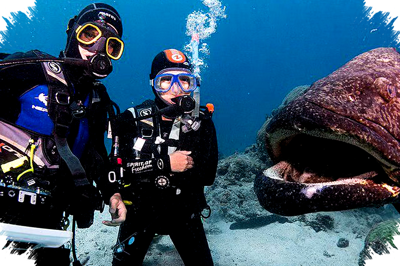 Ikan ini dikenal cerdas dan dapat mengenali kehadiran manusia, terutama penyelam yang memberinya makan. Setiap individu menunjukkan kepribadian berbeda, dari yang pendiam hingga aktif mendekat. Meski tidak berbahaya, penyelam disarankan menjaga jarak karena rahang kuat ikan ini bisa secara tidak sengaja melukai. Interaksi yang bijak harus selalu dijaga demi keselamatan kedua pihak.