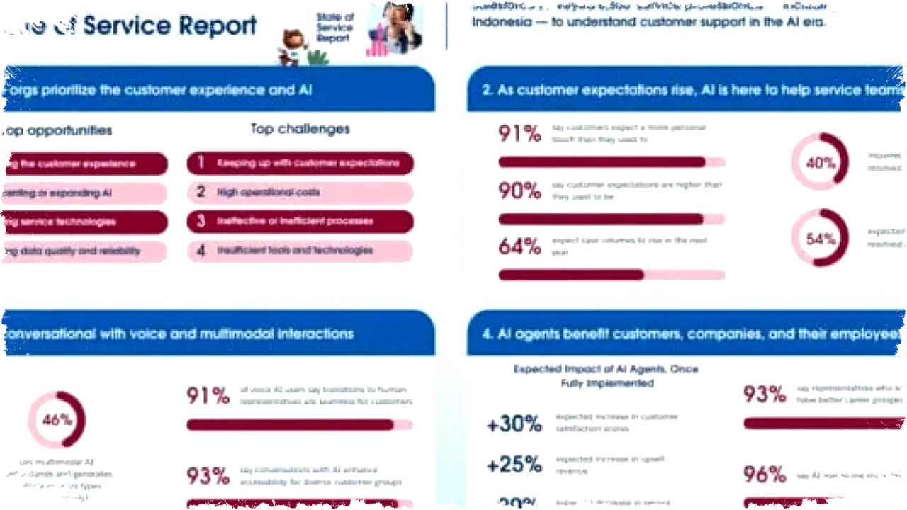 Laporan Global 7th State of Service dari Salesforce mengungkapkan perubahan besar dalam peran AI di sektor jasa. Survei yang melibatkan 6.500 profesional layanan pelanggan di seluruh dunia, termasuk 150 responden dari Indonesia, menunjukkan bahwa AI telah bertransformasi dari sekadar alat pendukung menjadi strategi inti bisnis. Di Tanah Air, adopsi AI berada di peringkat kedua prioritas perusahaan jasa, setelah fokus pada peningkatan pengalaman pelanggan.