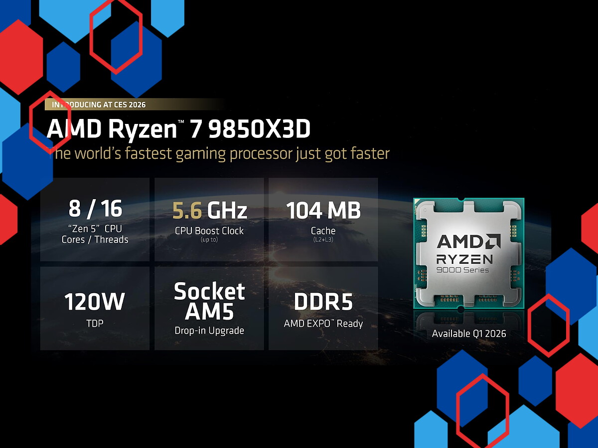 AMD resmi merilis Ryzen 7 9850X3D, prosesor gaming tercepat mereka dengan performa lebih tinggi dibanding pendahulunya, Ryzen 7 9800X3D. Prosesor ini menjanjikan peningkatan kecepatan clock boost hingga 5,6 GHz dengan tetap mempertahankan 96 MB 3D V-Cache dan TDP sebesar 120 watt.