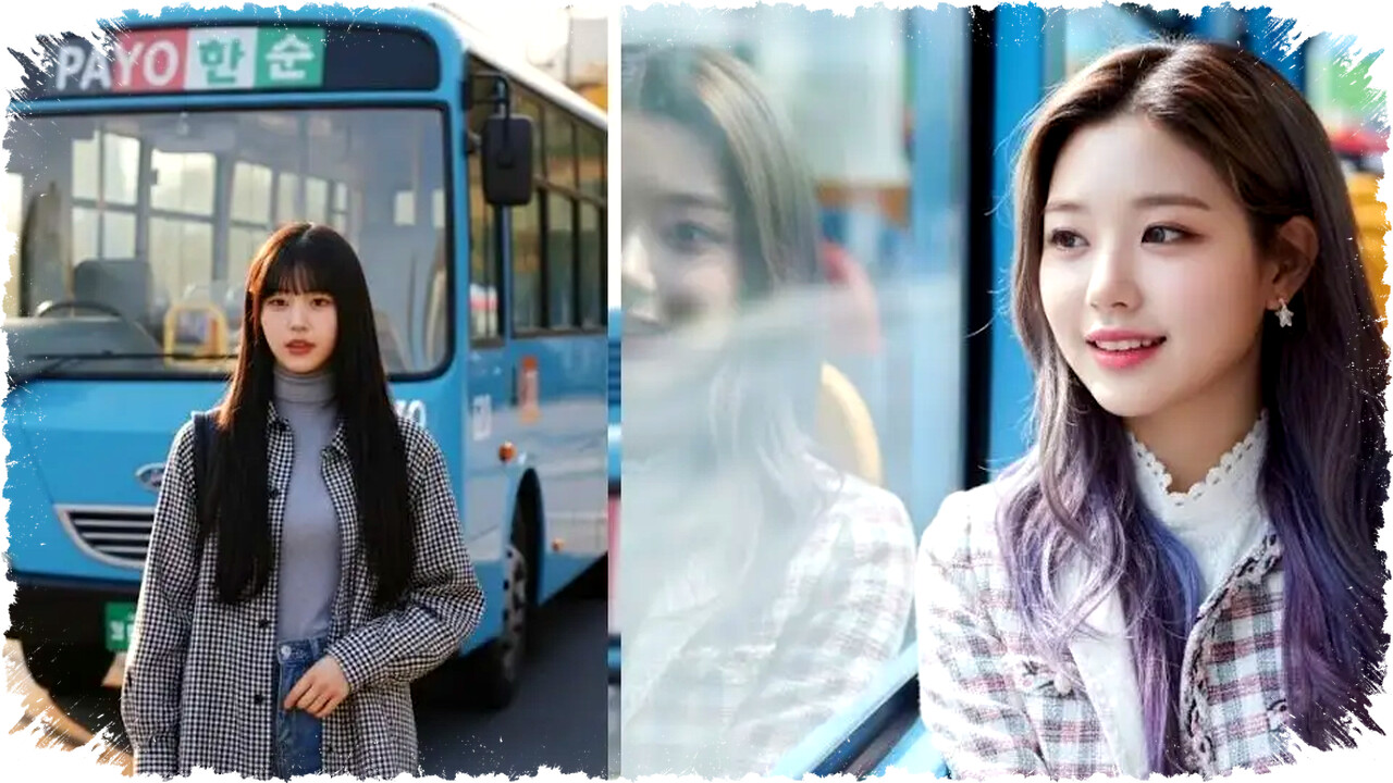 “Edit agar subjek duduk dekat jendela bus Tayo dengan ekspresi mata penuh emosi. Pencahayaan samping alami, suasana modern, dan detail seperti foto hasil kamera.” -