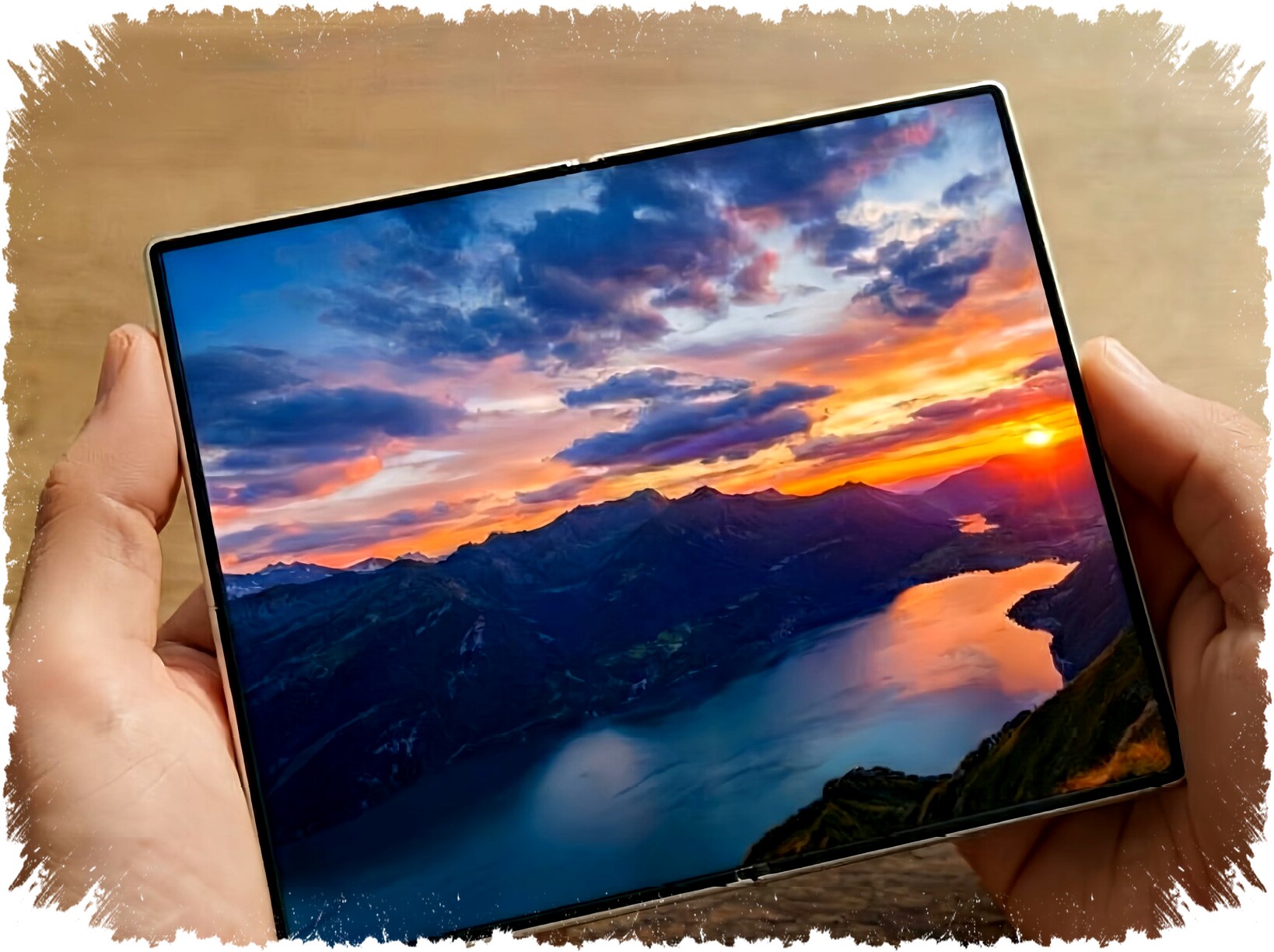 - Layar dalam berukuran 7,6 inci dengan aspek rasio 4:3.