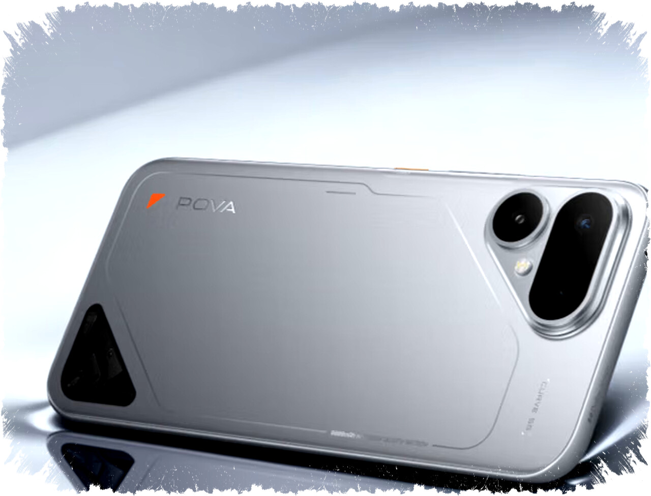 Desain bodi belakang Pova Curve 2 5G cukup unik. TECNO mengambil inspirasi dari pesawat luar angkasa untuk tampilan perangkat ini. Modul kamera berbentuk segitiga diletakkan di bagian pojok kiri atas, sementara ada area transparan segitiga di pojok kanan bawah yang menambah kesan futuristik.
