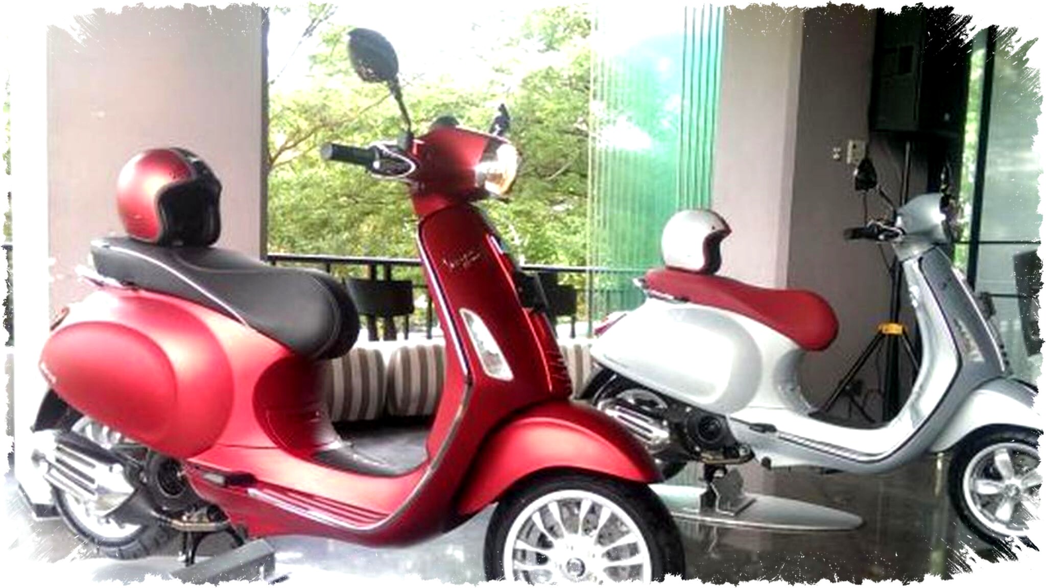 Elemen visual lain yang menonjol adalah jok berwarna abu-abu dan velg putih yang serasi dengan handgrips. Detail ini membuat skuter ini tampil lebih premium dibanding skuter matic lain di kelasnya. Vespa LX 150 bukan sekadar alat transportasi, melainkan juga pernyataan gaya untuk penggunanya.