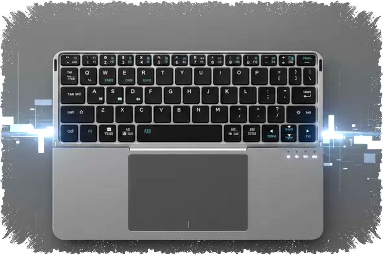 Selain itu, perangkat ini dilengkapi touchpad berukuran cukup besar. Touchpad tersebut mendukung gesture multi-sentuh, memungkinkan navigasi kursor langsung dari keyboard tanpa tambahan mouse. Ini memberikan pengalaman seperti menggunakan mini laptop dalam bentuk portabel.