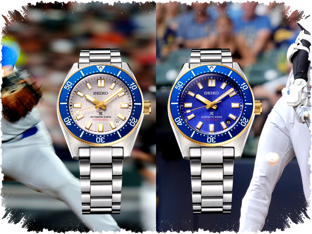 Seiko mengadopsi platform Diver’s 1965 Heritage yang sudah teruji kualitasnya sebagai dasar desain kedua edisi terbatas ini. Warna-warna yang dipilih terinspirasi dari seragam tandang Los Angeles Dodgers, klub Shohei Ohtani di Major League Baseball. Kombinasi abu-abu dan biru pada dial serta bezel, dilengkapi aksen emas di beberapa bagian utama seperti bezel, crown, indeks, dan jarum jam. Aksen emas tersebut merupakan penghormatan pada logo spesial MLB yang hanya dikenakan oleh pemain peraih penghargaan seperti MVP.