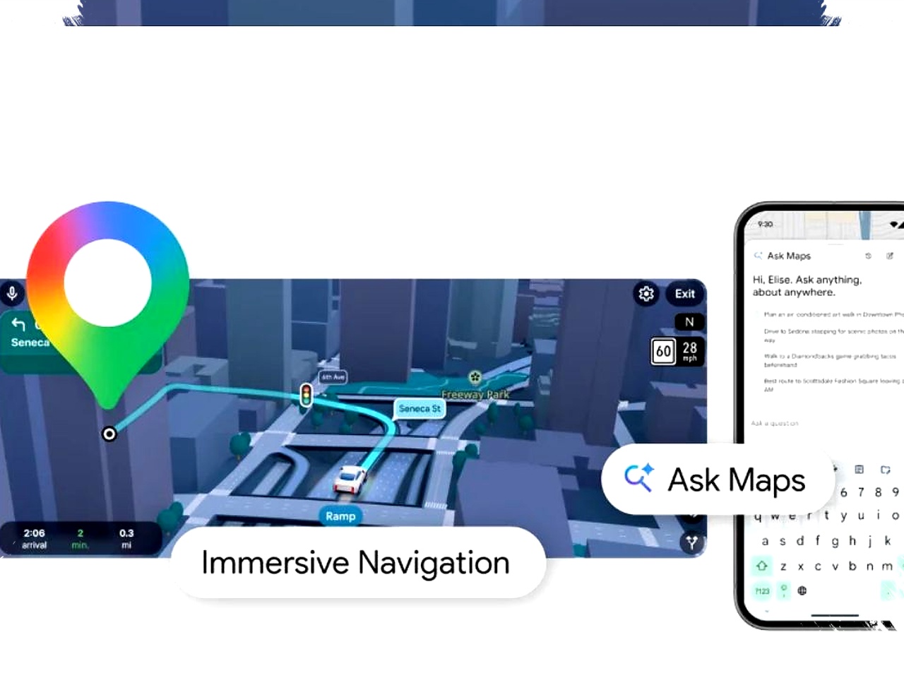 Selain pencarian cerdas, Google juga merombak tampilan navigasi lewat Immersive Navigation. Fitur ini menambahkan lapisan visual bergaya 3D yang menampilkan jalan, bangunan, kontur wilayah, dan kondisi lalu lintas dari sudut pandang pengemudi.