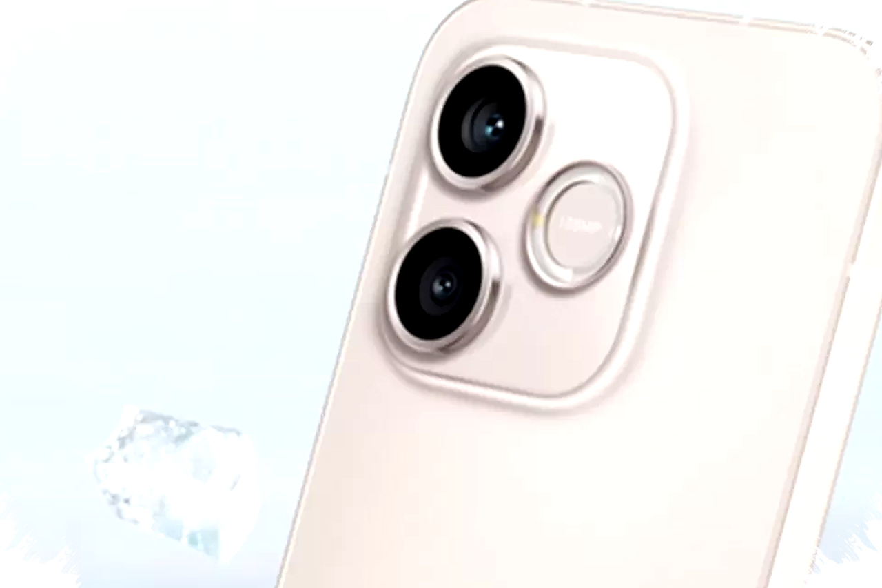 Kemiripan itu tidak berhenti di sisi depan. Modul kamera belakangnya juga mengadopsi tampilan tiga lingkaran bergaya zig-zag yang mengingatkan pada susunan kamera “boba” khas iPhone, dengan dua lensa dan satu LED flash.
