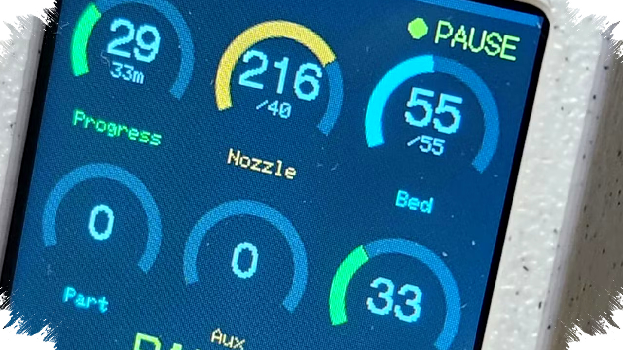 Informasi yang ditampilkan cukup lengkap untuk ukuran perangkat mini. Pembuat proyek menyebut dashboard ini bisa menampilkan “progress arc, temperature gauges, fan speed, layer count, [and] time remaining,” atau progres cetak, suhu, kecepatan kipas, jumlah layer, dan sisa waktu.
