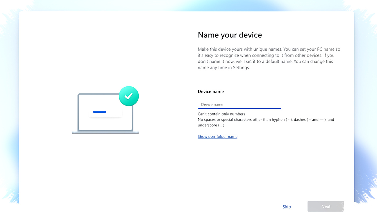 - Jika melewatkan pengisian, sistem akan menggunakan nama akun Microsoft secara otomatis.