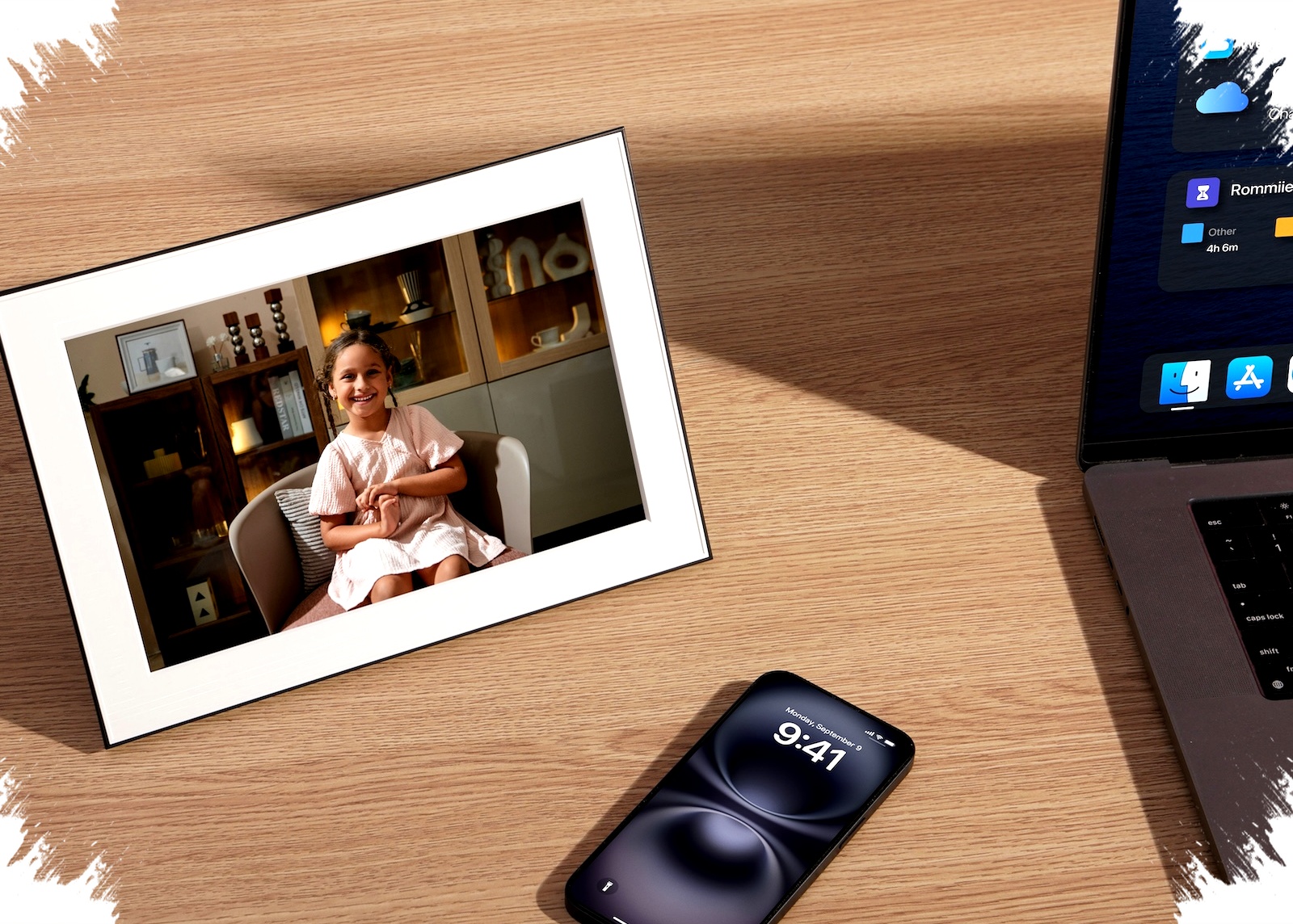 Bingkai foto digital dengan fokus pada interaksi
