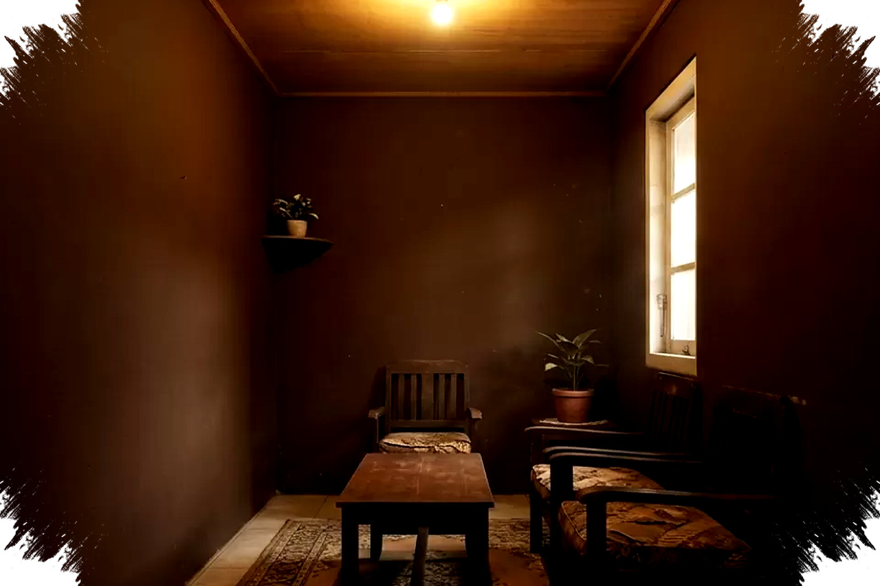 Warna ini memberi kesan hangat dan elegan, tetapi penggunaan dominan dapat membuat ruangan terasa gelap. Jika cahaya alami terbatas, dinding cokelat tua juga lebih mudah terlihat kusam. -