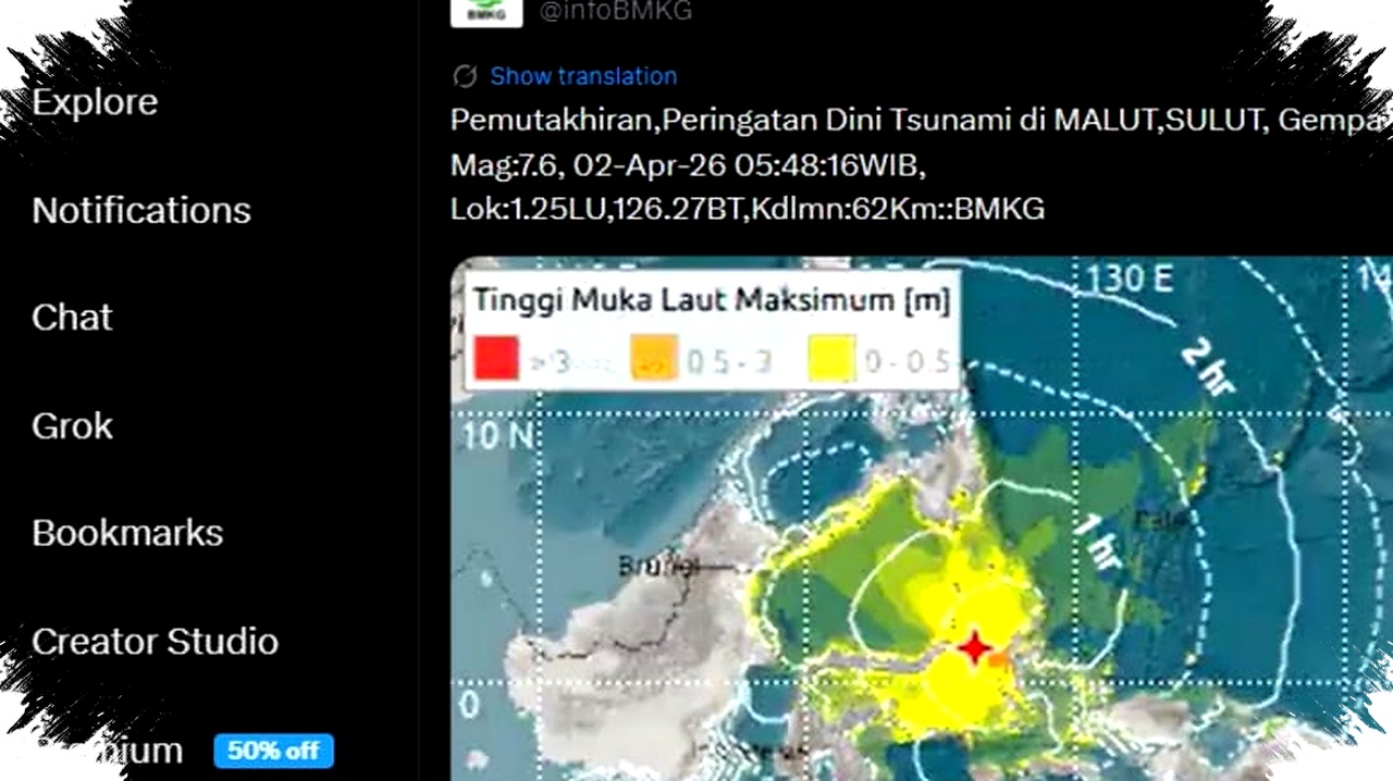 Gempa bermagnitudo 7,6 yang mengguncang Sulawesi Utara pada Selasa pagi, 2 April 2026, memicu kepanikan luas di wilayah pesisir. Warga yang berada di Bitung, Manado, Halmahera Barat, hingga sejumlah titik di Maluku Utara bergegas menyelamatkan diri setelah BMKG mengaktifkan peringatan dini tsunami.